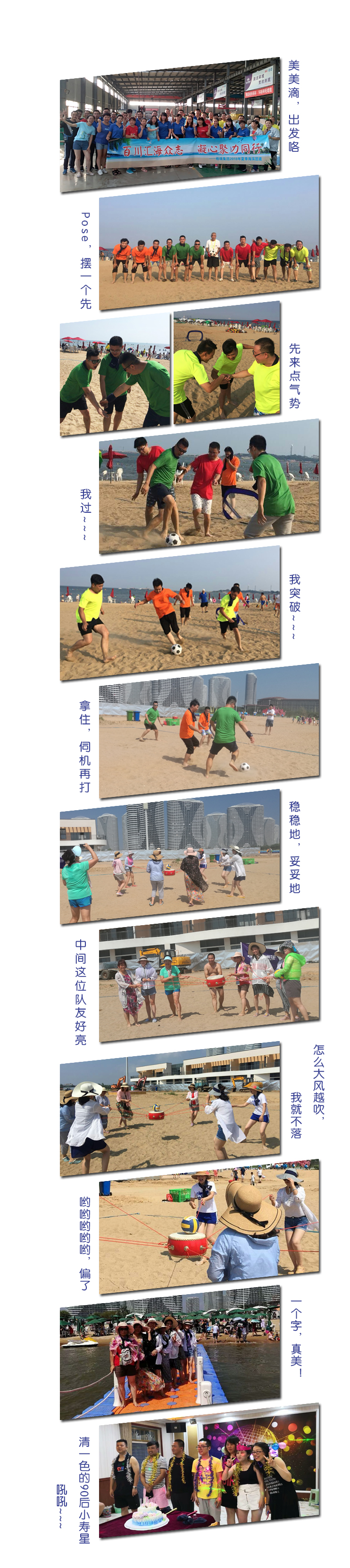 3日一大早,同事們懷著激動(dòng)心情,整裝待發(fā)開(kāi)拔第一站——秦皇島市山海關(guān),短暫游覽后集體開(kāi)赴東戴河。顧不得午后烈日的灼曬,團(tuán)隊(duì)活動(dòng)策劃同事開(kāi)始了團(tuán)建首個(gè)項(xiàng)目——三人制沙灘足球場(chǎng)地的遴選,最終佳兆業(yè)會(huì)所外沙灘成了此次活動(dòng)的主場(chǎng)。經(jīng)過(guò)一個(gè)多小時(shí)的定位、劃線、平整和安裝門(mén)柱等工序,兩場(chǎng)如火如荼的沙灘足球小組預(yù)賽正式開(kāi)始了。