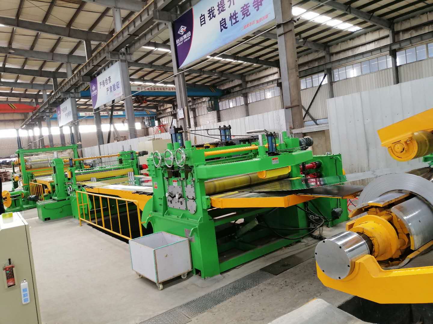 縱剪分條設備鋪設毛氈生產過程圖