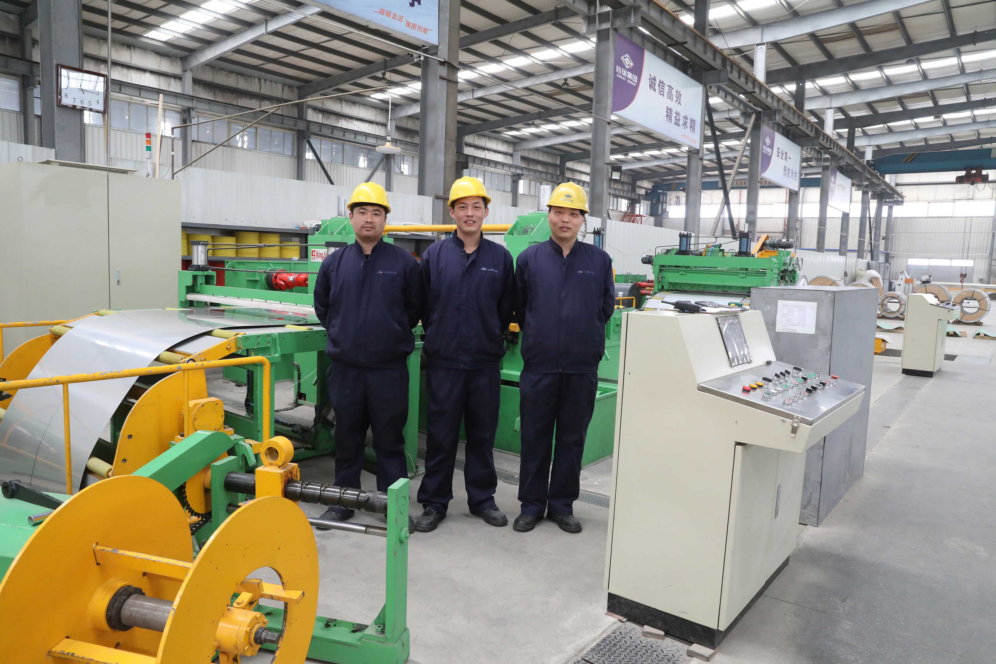 自集團剪切加工中心引入縱剪分條設備以來,由生產部部長帶隊形成技術攻堅組,連續攻克設備技術難題,一步步掌握設備原理、加工能力、生產要素、注意事項等。現在的分條機班組固定成員三人都是當時攻堅組的組員,他們平均年齡30歲,此前從未接觸過縱剪分條設備,在設備引入之初其中兩人還就任其他設備的主、副操作,學習新技術的同時必須保證其他設備的生產任務按時完成。設備廠家對其進行基礎培訓后撤場,他們發揚“一不怕苦二不怕累”的精神,利用下班時間加班加點的鉆研技術,最終在一周的時間內實現了縱剪分條設備的成功試產。