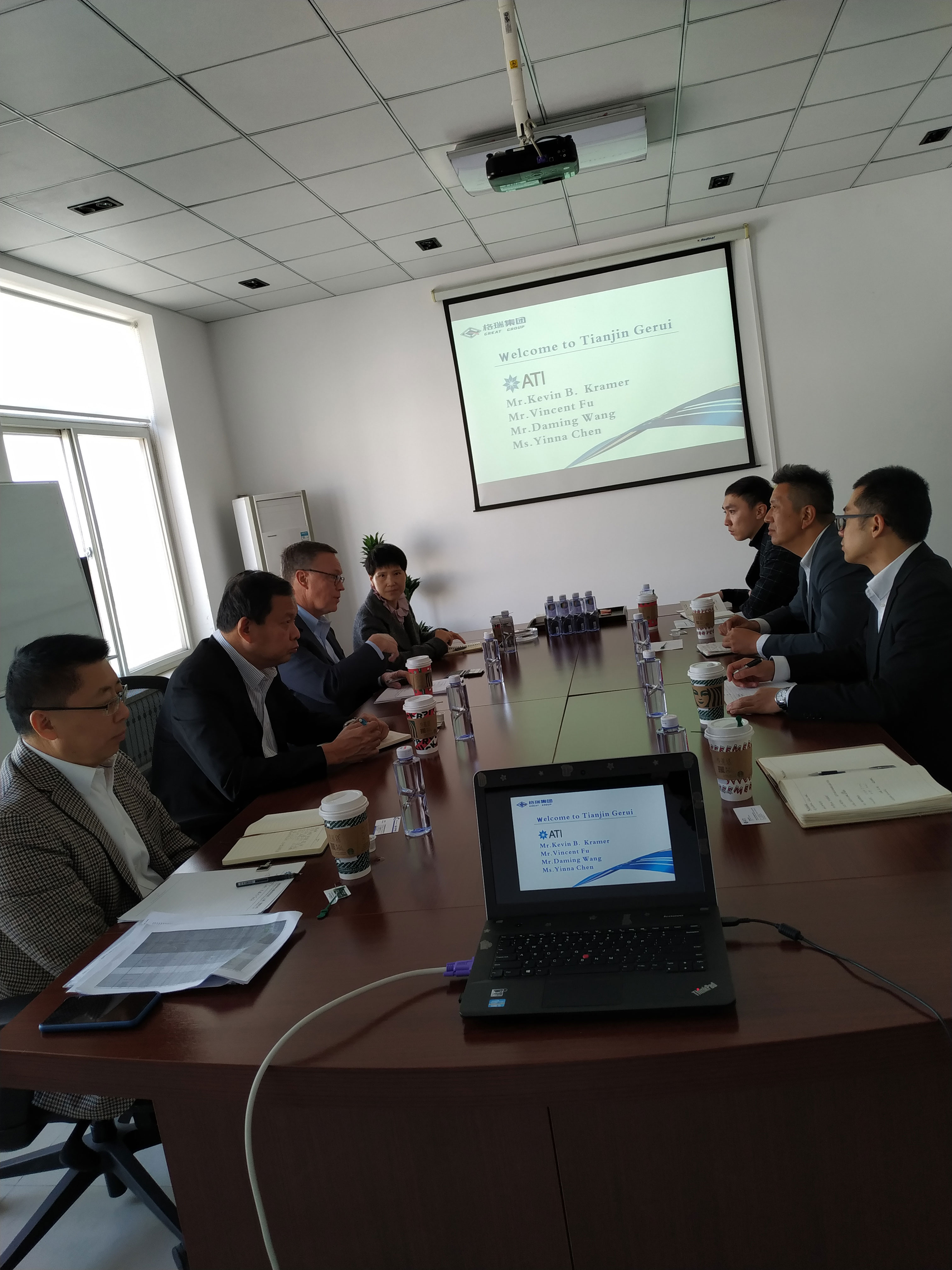 作者: 時間:2019-11-11 瀏覽:8791人次2019年11月8日美國ATI集團代表一行來到格瑞集團天津總部,與格瑞集團進行貿(mào)易洽談。